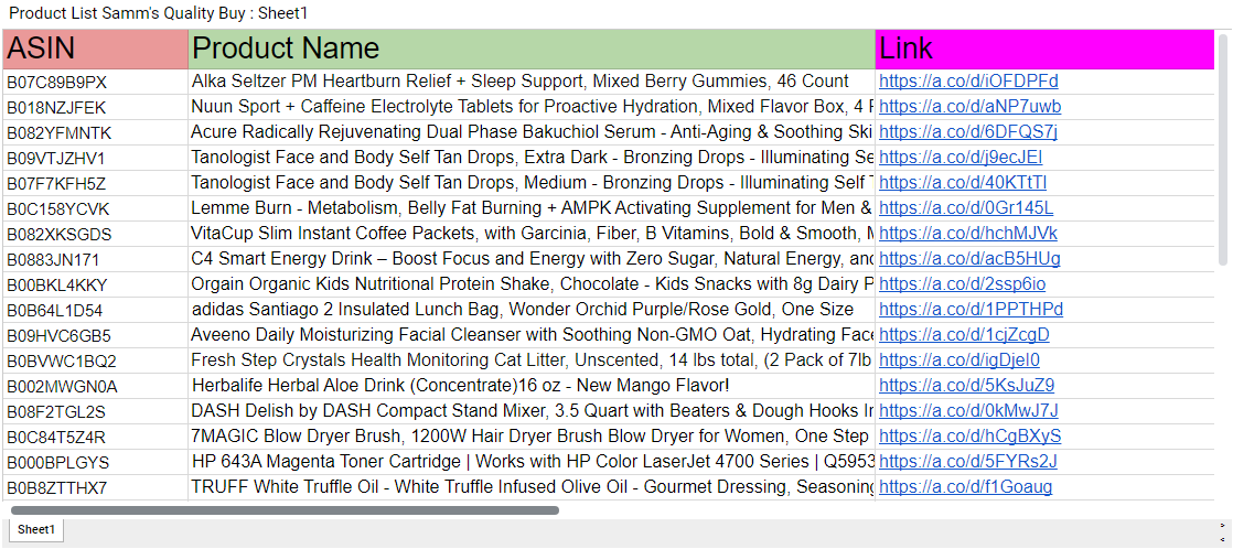 Product List Samm’s Quality Buy